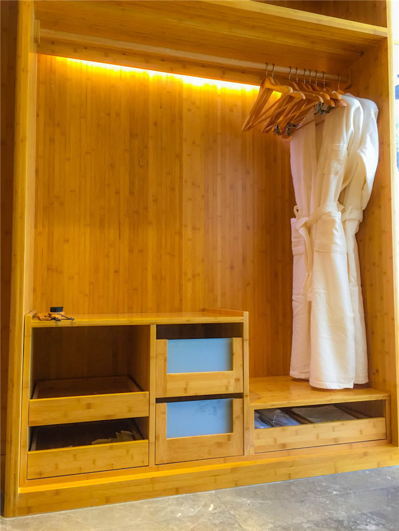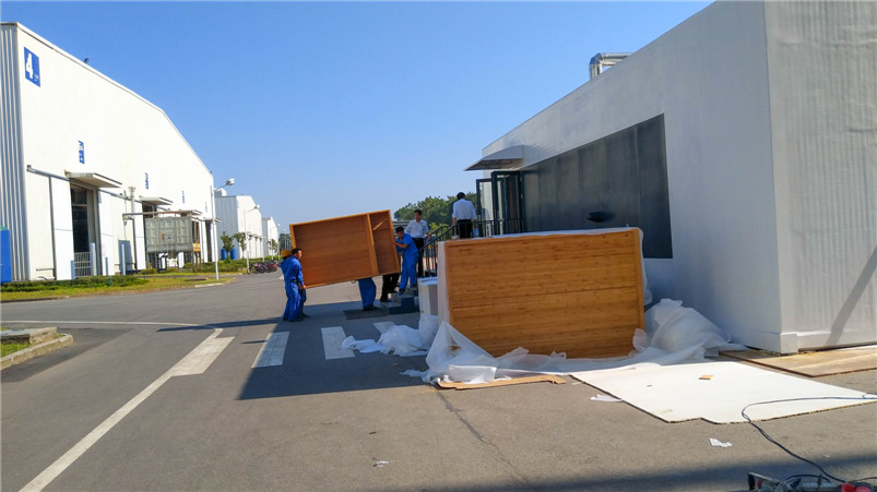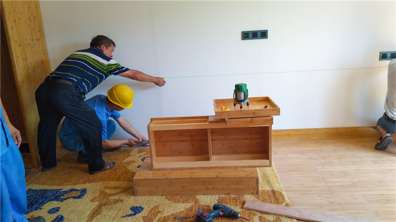 遠大可建是遠大科技集團全資子公司,是全球持續建筑的先驅,創造360小時建成30層精裝酒店的奇跡,目前在可持續酒店產品進行深度研發。基于對竹材的喜愛和對竹材環保的高度認可,遠大總裁張躍親自參與此次與桃花江竹材科技在其塔式酒店產品竹整裝項目的洽談。在遠大可建汨羅工廠,酒店竹整裝三套樣板間安裝施工已基本完成,內部裝飾全部在桃花江竹材科技工廠加工后運至在現場組裝,地面鋪設竹地板,整體效果簡潔、自然、溫馨。遠大總裁張躍視察樣板間后對竹材裝飾效果十分滿意,表示將加大對可建酒店竹整裝項目的研發與推廣,加強與桃花江竹材科技的深度合作,期望未來全世界每三幢新建建筑就有一幢是可建。