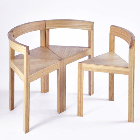 近年來,由于森林資源的日漸減少,我國又是嚴重缺林國家,據專家預測,到2010年我國木材供需將面臨6 000萬立方米的缺口,長期以來我國的木材需求量大于供求量,供需矛盾相當尖銳,尤其是珍貴木材資源更趨于枯竭,難以滿足家具生產需求。竹類植物具有生長快、生長能力強、生長周期短的物種優勢,符合自然設計提出的“4RE”原則(Reduction、Reuse、 Recycling、 Regeneration),竹材紋理通直、色澤淡雅、材質堅韌、資源豐富,是一種可持續發展的能取代木材的資源。