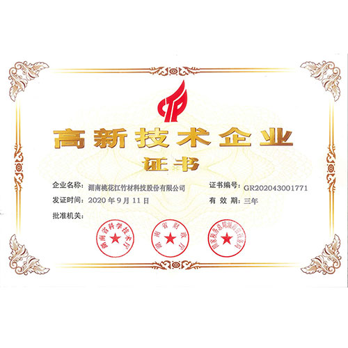 桃花江竹材連續12年都榮獲“高新技術企業”榮譽稱號。