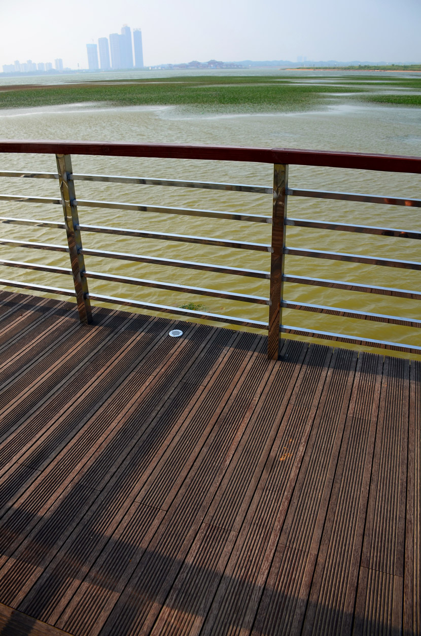 松雅湖國家濕地公園位于長沙星沙,是集防洪調蓄、城市飲水、改善城市生態環境、完善城市功能配套布局、提升城市生活品位于一體的綜合性工程。 松雅湖生態公園總占地面積489.62公頃,合7 344.3畝。位于長沙縣北部,北至撈刀河,南至濱湖路,東至東六線(北段)和東八線(南段),西至松雅河,通過澳大利亞GHD公司的規劃設計,擬以松雅湖為核心,建成一個以湖光山色、自然生態為基礎的,集休閑、旅游、娛樂、健身、水上活動等功能于一體的綜合性公園。 松雅湖濕地公園大面積使用桃花江竹材科技生產的戶外高炭防腐環保竹材。