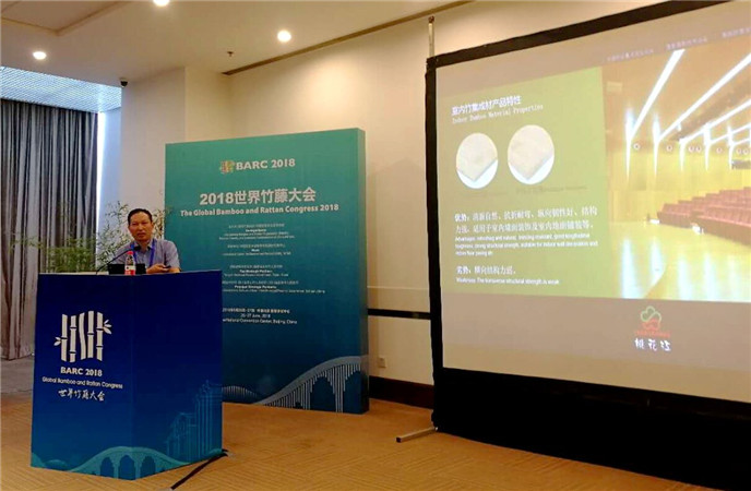2018世界竹藤大會在北京隆重舉行,國務院總理李克強向大會致賀信,桃花江竹材科技董事長薛志成應邀出席并作專題演講。