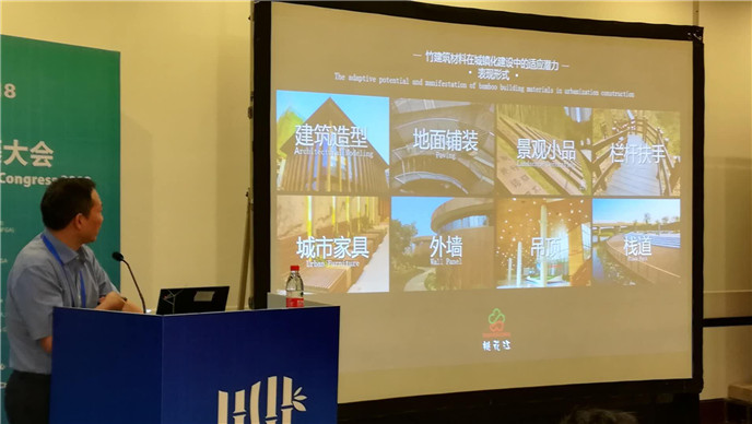 薛董以《竹建筑材料及其在城鎮化過程中的應用潛力》為題,圍繞中國工業化以來企業運用現代工藝技術及設備研發新的竹材產品,闡述在我國城鎮化建設過程中竹材新產品在室內外的運用以及未來的巨大潛力,結合豐富的案例展示了中國竹材產品的應用成果及竹材應用的發展趨勢。薛董的演講得到了來自世界各地的科研院所、高校、企業界的100多位代表的廣泛關注。
